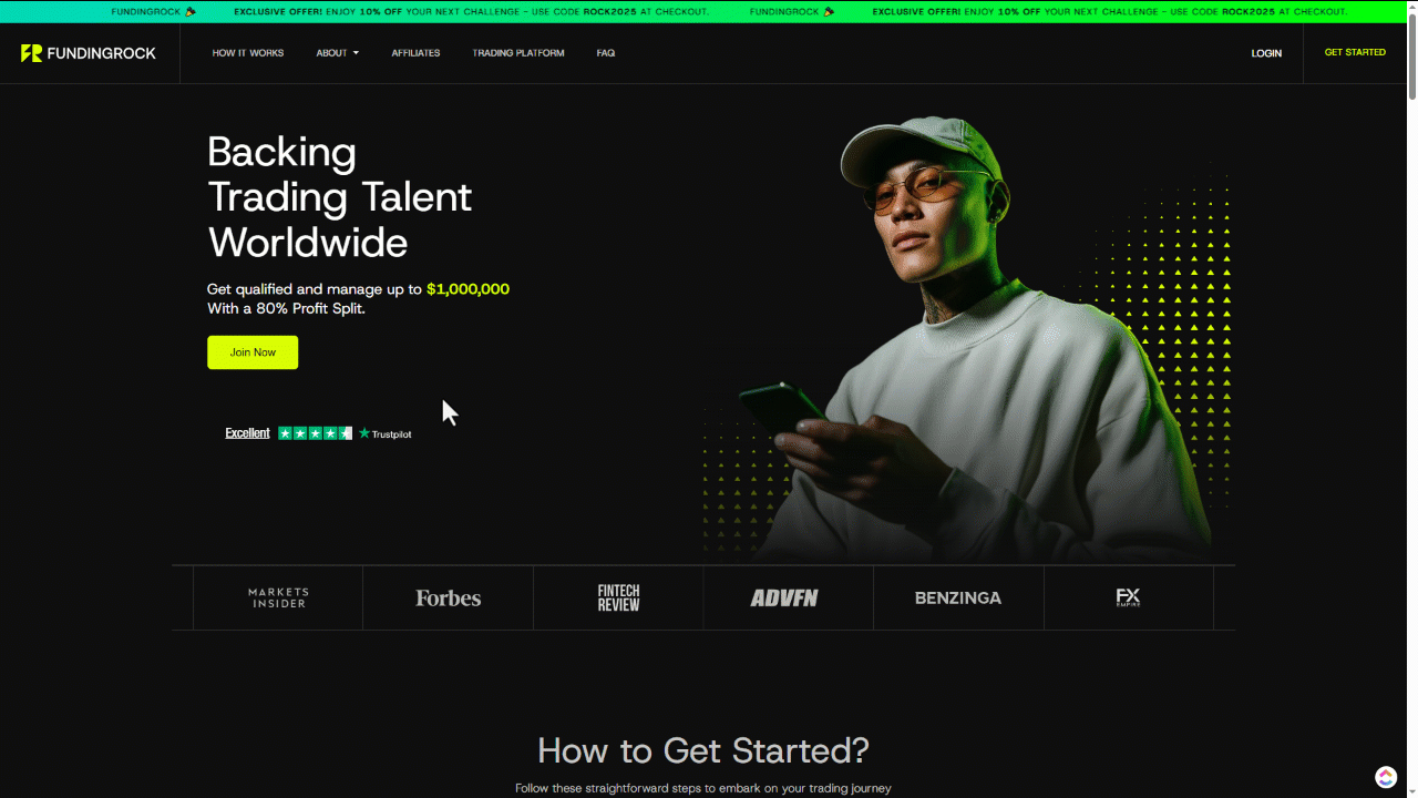 Getting started with FundingRock is very easy. Click the “Join Now” button on the homepage, complete the registration steps, and select a challenge that fits your trading style and preferred account size. From there, you trade, follow the risk rules, and work toward your profit targets.